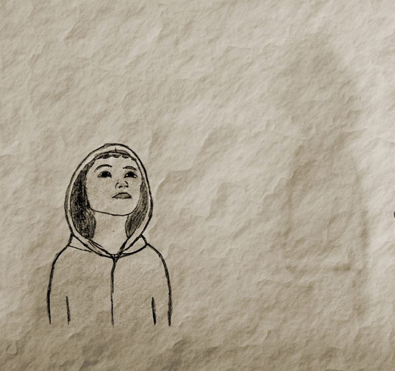 “Oh, shut up.” Her friend wore winter on his coattails. It swirled and moaned around him in constant flux, the ultimate wet blanket. It was his fault she wore a hoodie year-round to prevent frostbite.